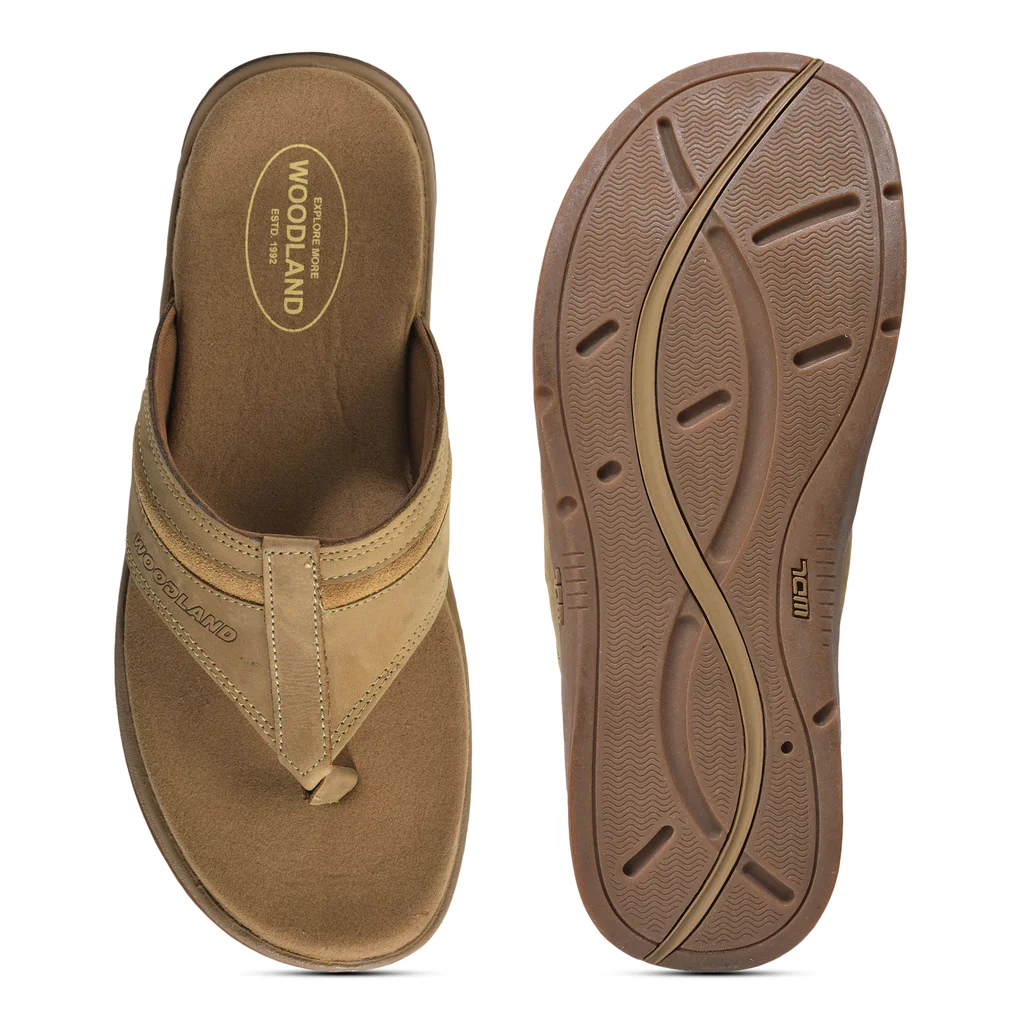 Product DescriptionAdd a touch of earthy sophistication to your casual footwear collection with these camel-colored men’s slippers from FOOTSY. Crafted with a nubuck finish, they combine elegance and rugged durability. Perfect for laid-back outings or outdoor adventures, these slippers offer unmatched comfort with Woodland’s signature quality, making them an ideal choice for the modern man who enjoys a chill, outdoorsy vibe.